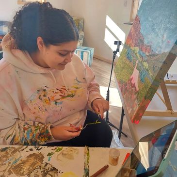 "This experience exceeded all my expectations! The studio is nestled in a charming residential area, making for a peaceful and inspiring retreat. I loved watching people stroll along the walking trail behind the studio and seeing the farming activity in the distance through the big windows. The chickens on the property kept me company, making me feel like I was in my own little world.
